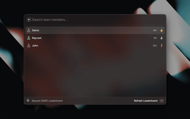 2. Create a Team in Raycast Use the Create Team command in Raycast. Paste the webhook URL, set a team name and your username. You’ll receive a Team Code — share this with your teammates.