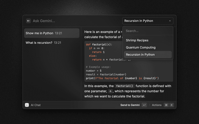 Use the powerful new Google Gemini Pro models from the comfort of Raycast.