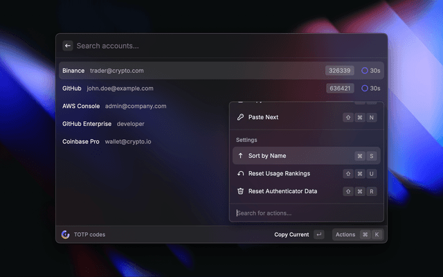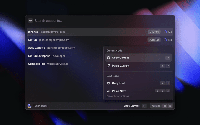 A Raycast extension to quickly access your TOTP codes from Proton Authenticator.