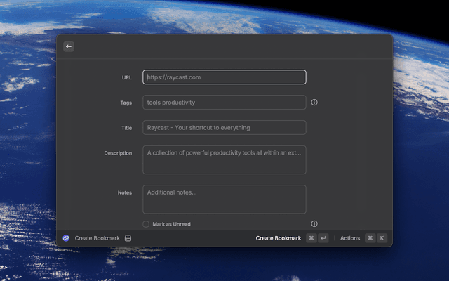 • The Linkding API key and server URL from your Linkding instance are needed to use this extension.