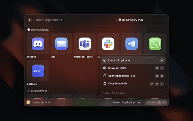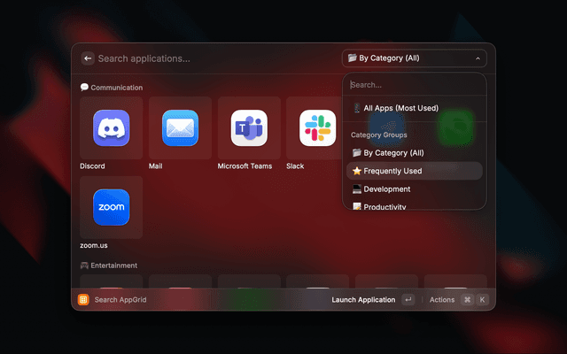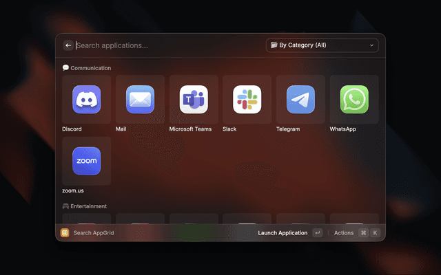 Launch your macOS applications with smart categorization and grid view.