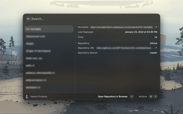 Fetch a searchable list of all projects and allows you to open the url of its DeployHQ page or the url of its assigned repository in the browser.