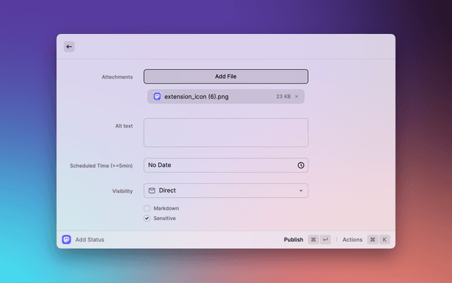 Toggle the "Sensitive" checkbox to mark the attached image as sensitive, or add a content warning to the status.
