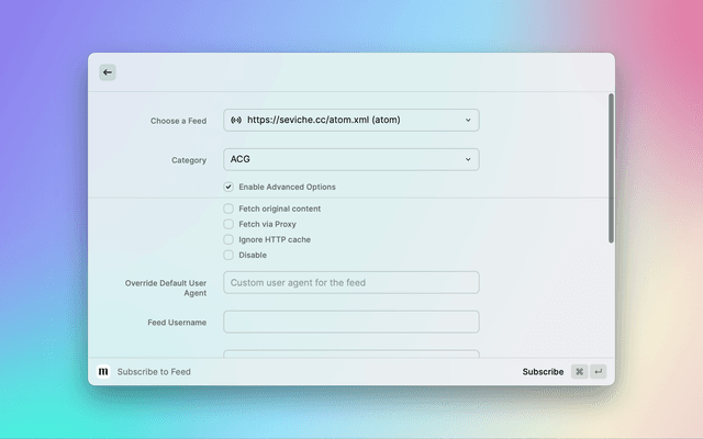 • Subscribe to a new RSS feed