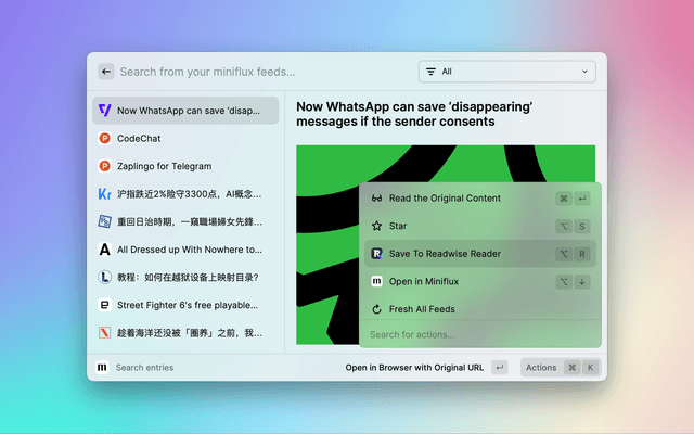 A Raycast extension for Miniflux