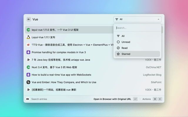 • Search entries in your subscribed RSS feeds