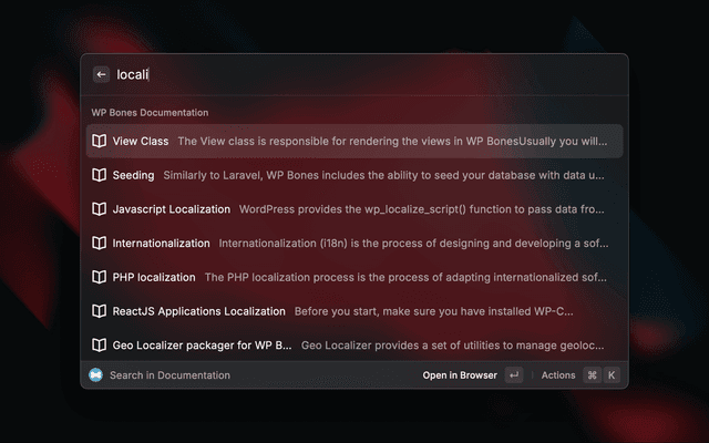 • Search in the WP Bones Documentation: Search the WP Bones documentation for a specific keyword.
