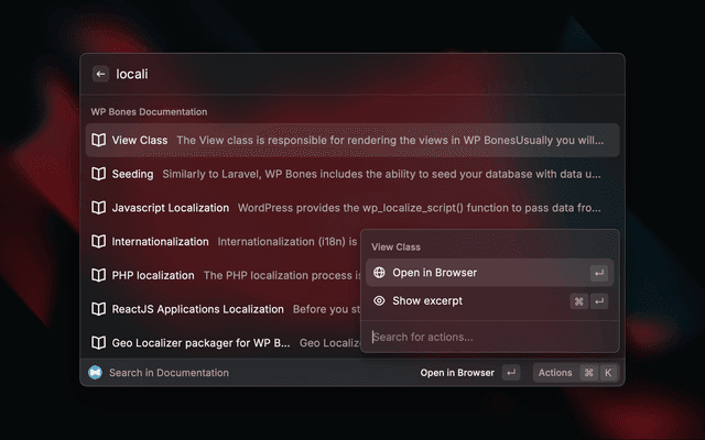 • Open the WP Bones Documentation: Open the WP Bones documentation in your default browser.