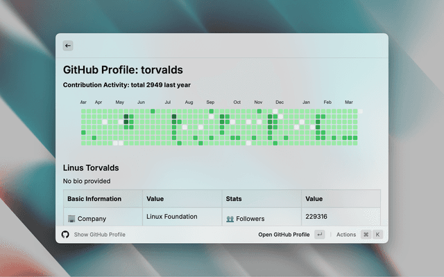 • Regular REST API (used for profile and repositories) can work without a token but with rate limits