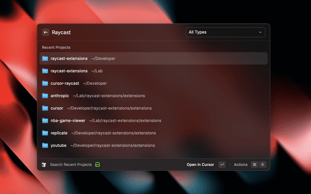 • Reach and search the Cursor Documentation in an instant right from Raycast without any hassle.