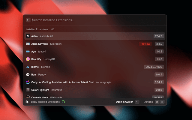 Control Cursor, Cursor & Codium directly from Raycast - Search and open recent projects, handle extensions and commands.