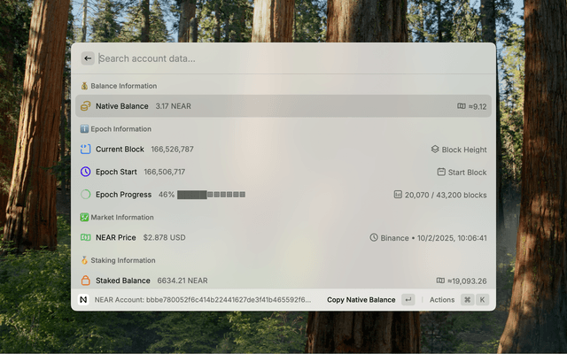 - Install the NEAR Rewards extension from the Raycast Store