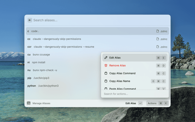 3. Edit aliases: Press Cmd-E or select Edit Alias to modify existing aliases (supports renaming)