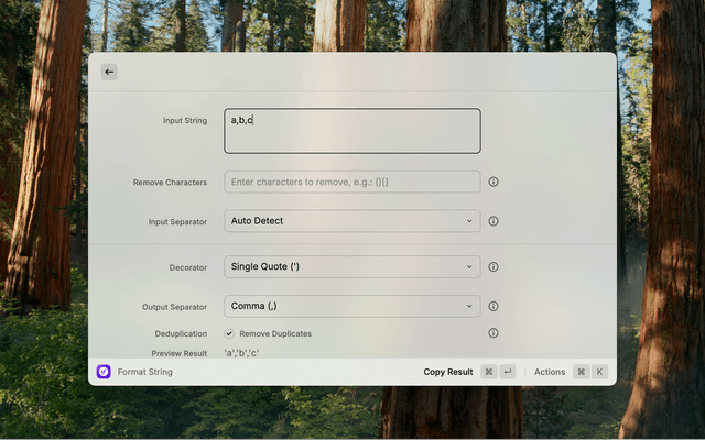 A powerful string formatting Raycast extension with intelligent separator detection, character removal, custom decorators, and output formatting.