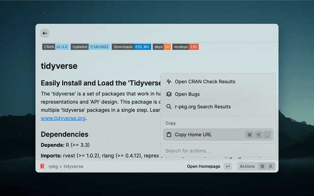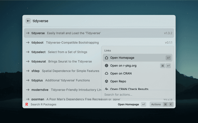 A Raycast extension to search for R packages using METACRAN on r-pkg.org.