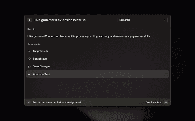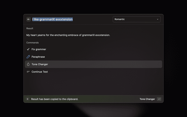 • Tone Change: Adjust the tone of your writing, whether it's happy, friendly, romantic, and more.