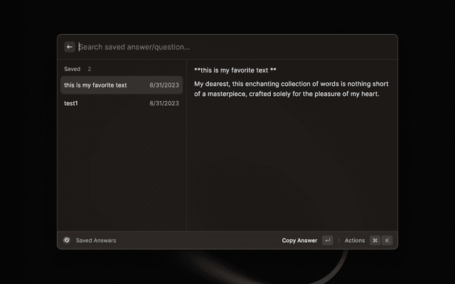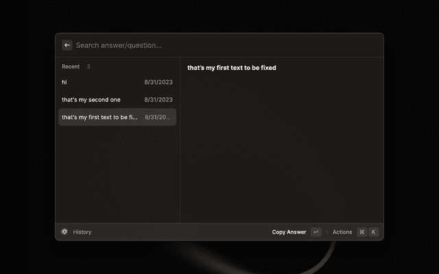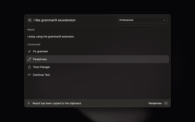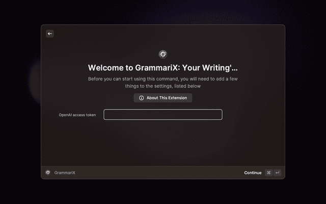 Your Writing's Best Friend. In this extension, you can fix your grammar and paraphrase your sentences more effectively. If you have a Raycast Pro subscription, you don't need to provide openAI key.