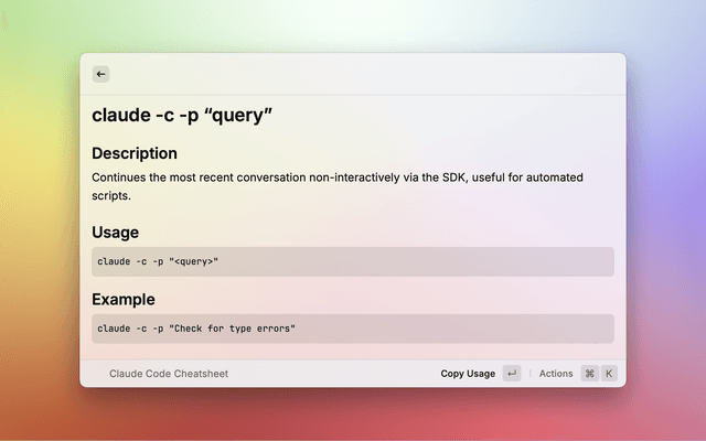 Claude Code Cheatsheet for Raycast