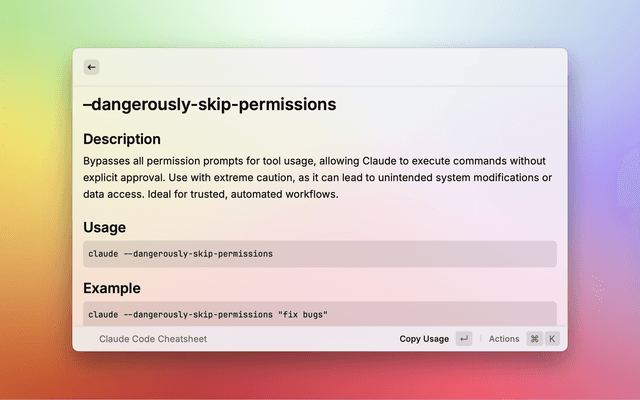 A comprehensive, interactive cheatsheet for the Claude Code CLI. Instantly access the latest commands, options, and unique thinking keywords to supercharge your development workflow.