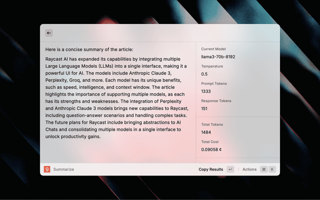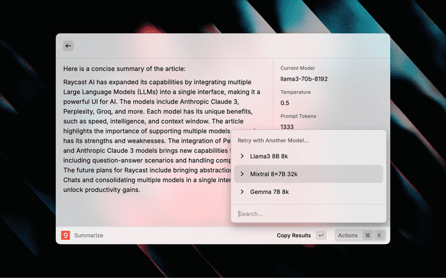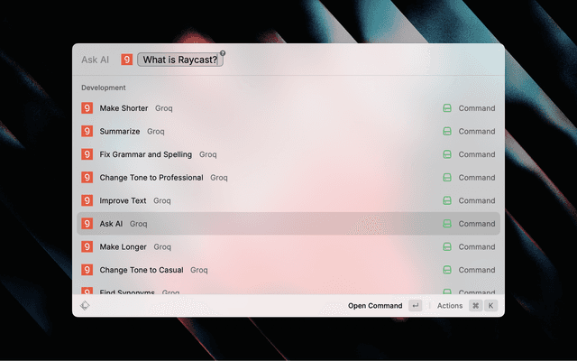 Use the powerful models via Groq from the comfort of Raycast.