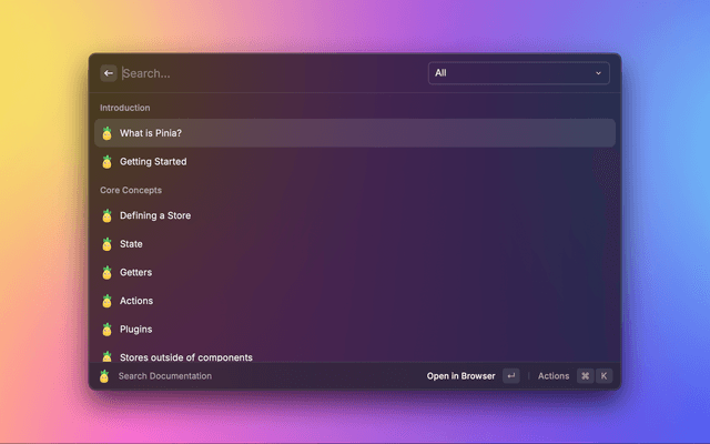 A Raycast extension to quickly search and open Pinia documentation.