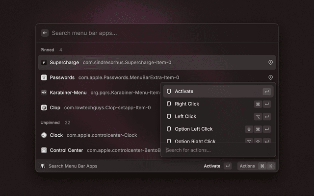 Interact with Bartender and menu bar icon apps