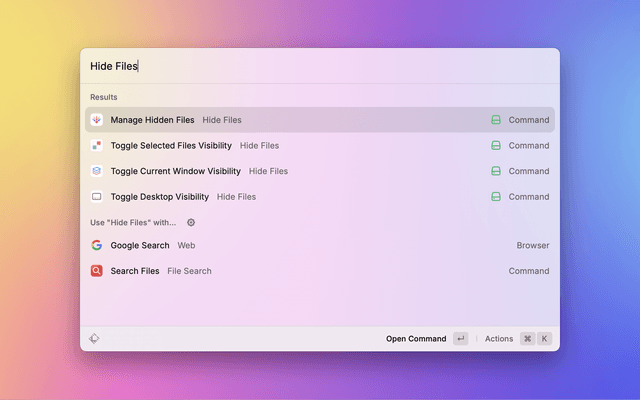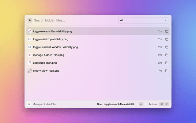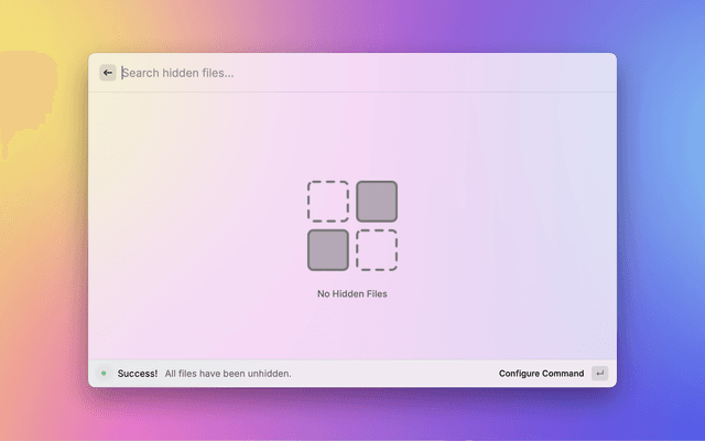• 🌟🌟🌟But you can always use the shortcut " ⇧+⌘+. " or Raycast build-in Toggle Hidden Files command to see all system hidden files.