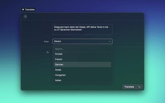 Translate words, or entire sentences, into 27 different languages using DeepL.