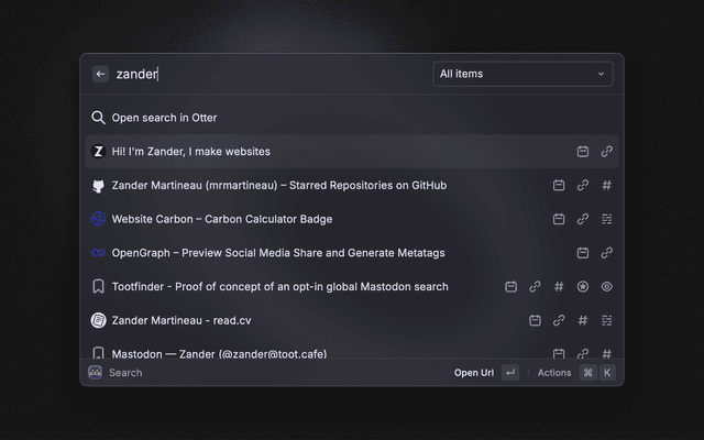 Raycast extension for Otter bookmarks, a self-hosted bookmarking app created by Zander Martineau
