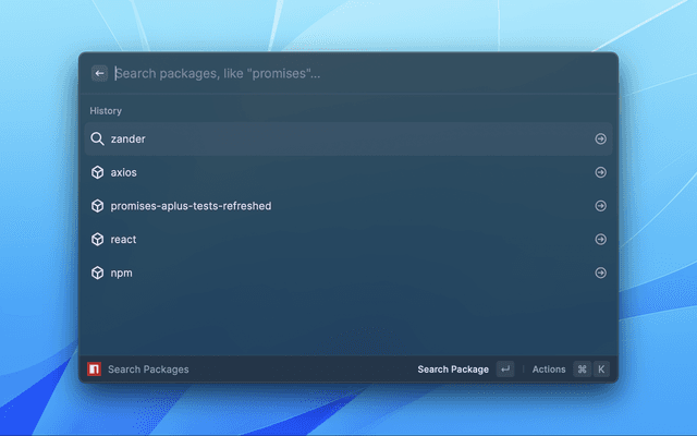 Raycast extension to search and favorite npm packages
