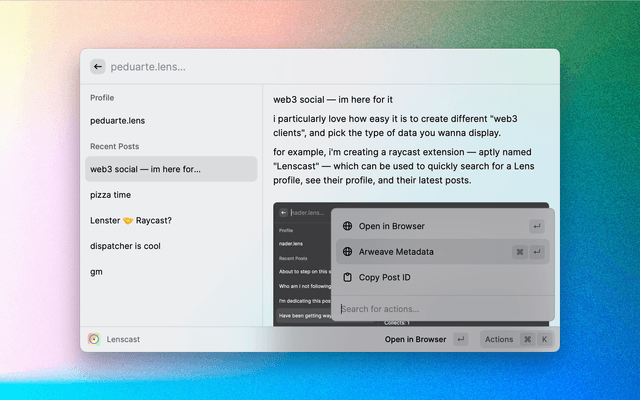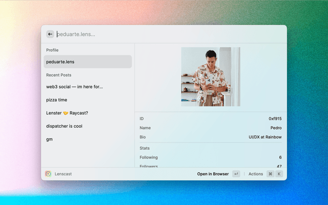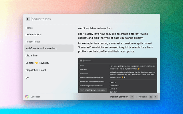 Web3 Social Raycast Extension bult with Lens Protocol