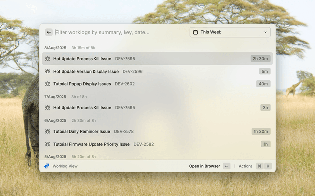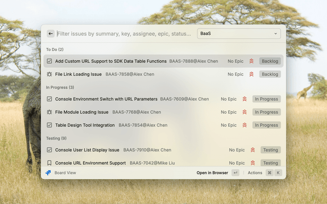 • Notification View - View Jira notifications (requires Notifications for Jira plugin on your Jira instance)