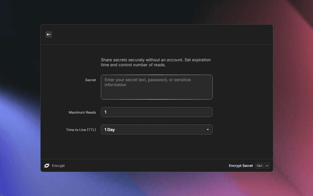 • No Account Required: Share secrets without creating accounts or logging in